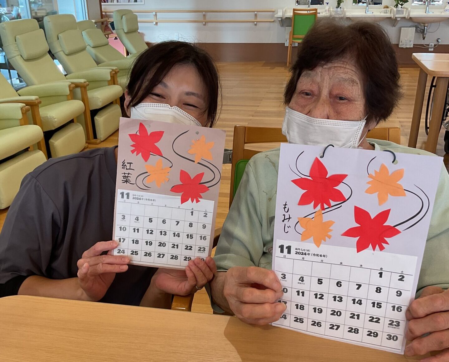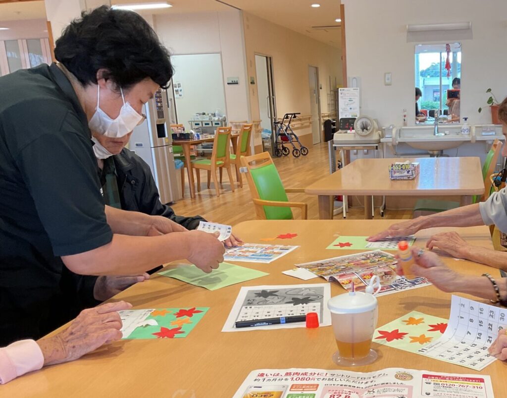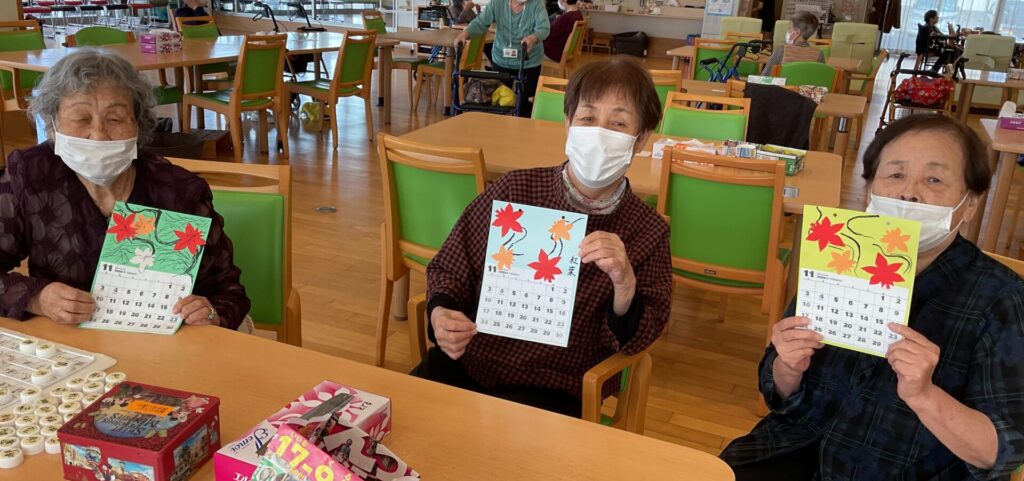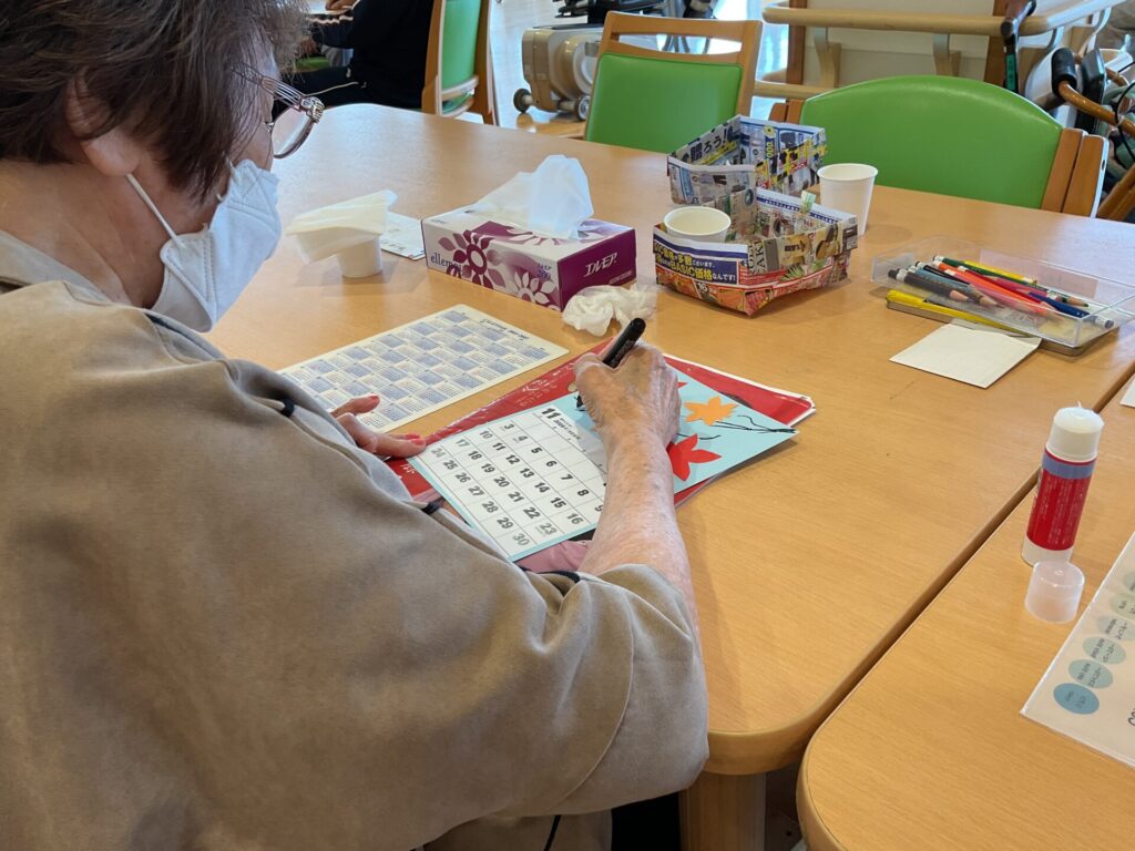 カレンダー制作をしました!2024/10/23 投稿日 2024年10月23日 著者 通所介護事業所 ハートヒルかわげR23 カテゴリー スタッフブログ ハートヒルかわげR23です(^_^)今日は当施設で行ったカレンダー制作についてお伝えします。利用者の皆さんと一緒に11月のカレンダー制作を行いました!職員もサポートをしながら、一緒に楽しみながら作ることができました(^^)また出来た作品を見せ合いながら、笑顔で褒め合っている姿も見られました!今後も定期的に制作行事を企画し、利用者の皆さんが楽しめる時間を提供していきたいと思っています。 ハートヒルかわげR23