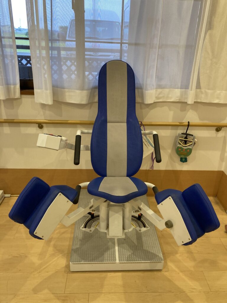 立ち座りの安定性に重要な、足の前ももの筋肉を鍛える事ができるマシンです。