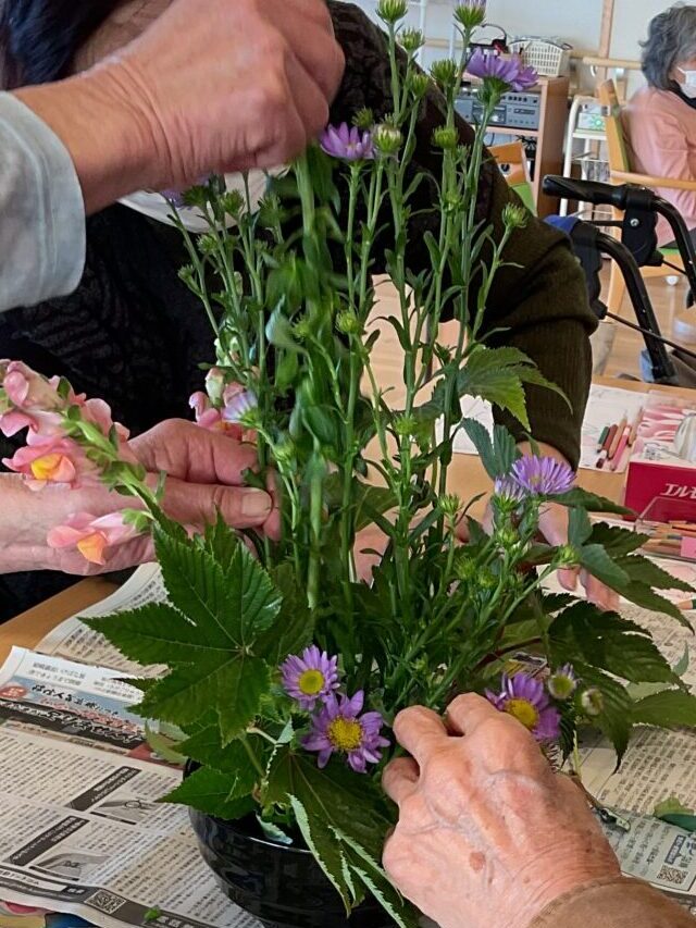 生け花をしました🪷その2 投稿日 2024年11月6日 著者 通所介護事業所 ハートヒルかわげR23 カテゴリー スタッフブログ ハートヒルかわげR23です😉本日は前回とは違うお花で生け花をしました🌸お花はアスター、金魚草、木苺です!昔、お花を習っていらっしゃったご利用者様もおられ、繊細かつ大胆な作品の数々に感動しました😀生け花を生け終わった皆さんは、花のように素敵な笑顔であふれていましたよ🌞今後も利用者の皆さんが楽しめる時間を提供していきたいと思っています。生け花に興味のある方は、ぜひハートヒルかわげR23に体験に来て下さい🚗 ハートヒルかわげR23