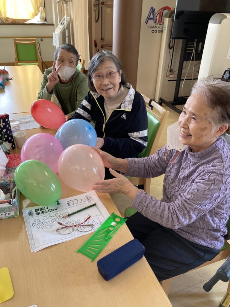 🎈風船割りゲーム🎈 投稿日 2024年11月12日 著者 通所介護事業所 ハートヒルすずか カテゴリー スタッフブログ 今日のハートヒルすずかです👍風船膨らまして割る遊びをしました💑みんな楽しく笑顔がいっぱいでした💗 ハートヒルすずか