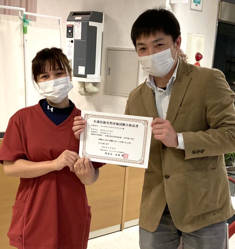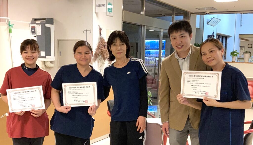 介護技能実習評価2号試験 合格いたしました🎉 投稿日 2024年12月16日 更新日 2025年2月10日 著者 介護老人福祉施設 ハートヒルかわげ 特養 カテゴリー スタッフブログ ハートヒルかわげ(特養)にて研修に励む外国人技能実習生3名の方が・・・介護技能実習評価2号試験に合格🎉いたしました😆😆😆<ヤッタネ🌟皆さん当施設の統括と一緒に記念撮影!素敵な笑顔をありがとうございます😁😁😁実習生の皆さんはいつも真面目で意欲的!食事🍴や入浴🛁、トイレの介助🚽などなど…様々なところで活躍していただいています!もちろん、入所者様とのコミュニケーションもバッチリOKです💕これからもハートヒルかわげで一緒に頑張っていきましょう!🌟みんなで一緒に記念撮影🌟ん~いい笑顔! ハートヒルかわげ ハートヒルかわげ(特養)