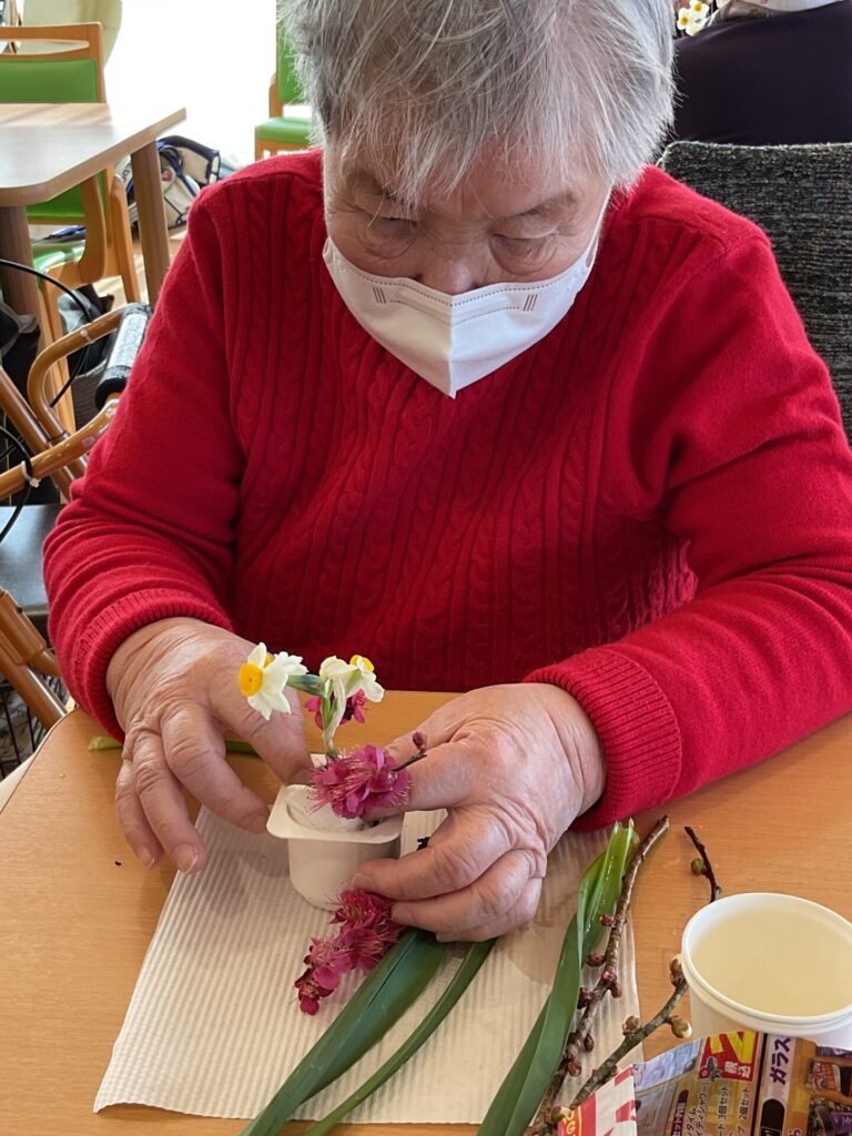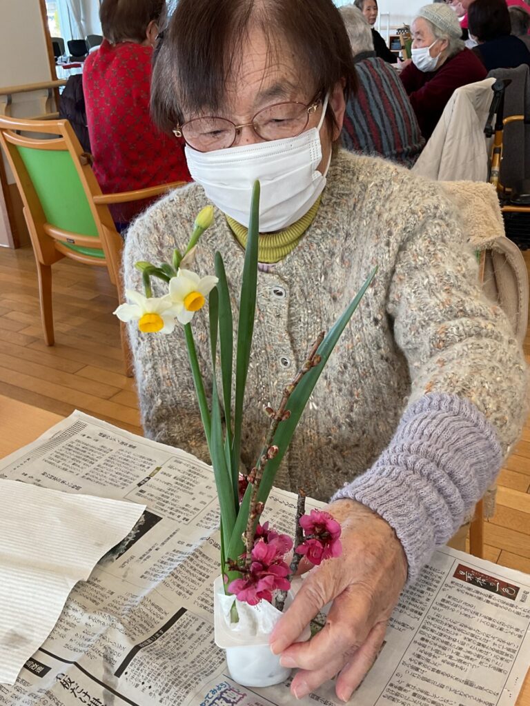 フラワーアレンジメントをしました🌸 投稿日 2025年3月1日 更新日 2025年4月3日 著者 通所介護事業所 ハートヒルかわげR23 カテゴリー スタッフブログ ハートヒルかわげR23です🐻2/27㈭は、フラワーアレンジメントをしました🖐️今回のお花は、紅白の梅、水仙、アルストロメリア、スターチス、スプレーカーネーション、カスミソウです!豪華!紅白の梅と水仙はご利用者様の旦那さんに持ってきていただきました😮素敵なお花をありがとうございました☺️皆さん可愛らしくお花を生けてくださいましたよ🌷フラワーアレンジメントにご興味のある方は、ぜひハートヒルかわげR23におこしください! ハートヒルかわげR23