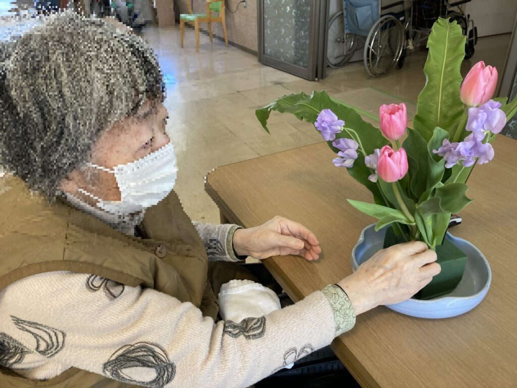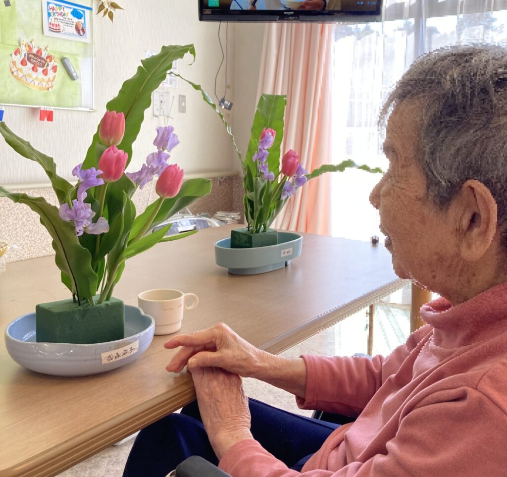 春の華やかなお花を活けていくたびに、皆さんのお顔も晴れやかになっていましたよ