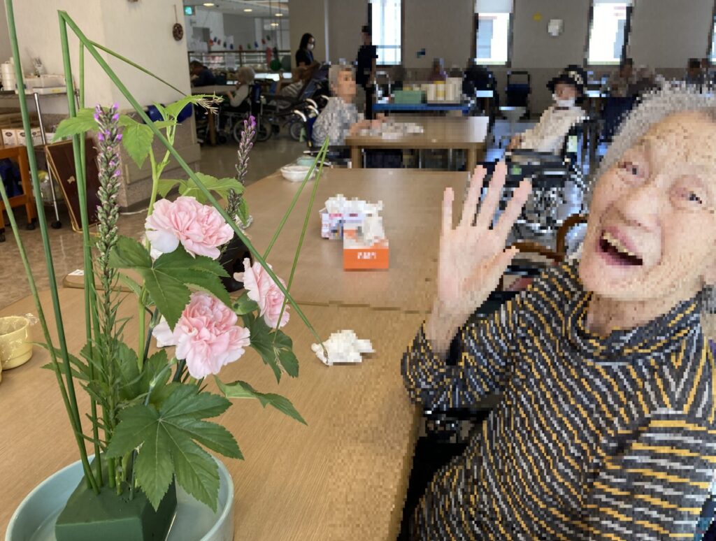 「このピンクの花(カーネーション)好きやわぁ!ほんとキレイ!」