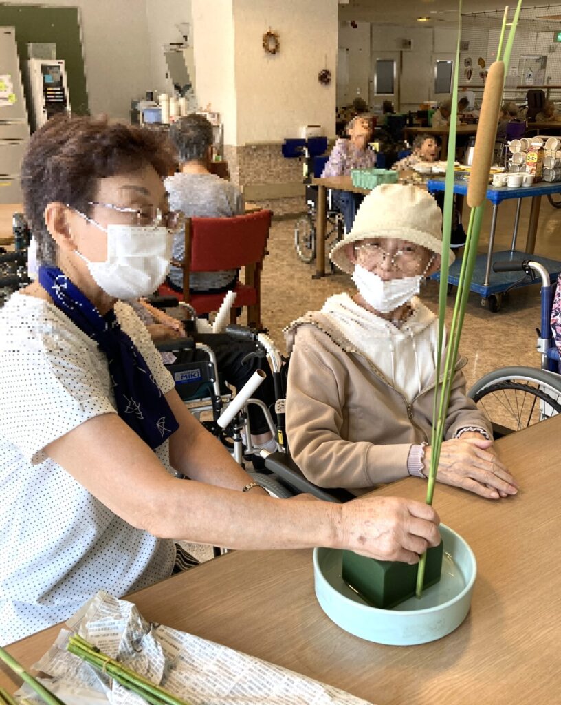 生け花教室に参加された方だけでなく、他の方もお花を見ながらいろいろ思い出を話されていましたよ!