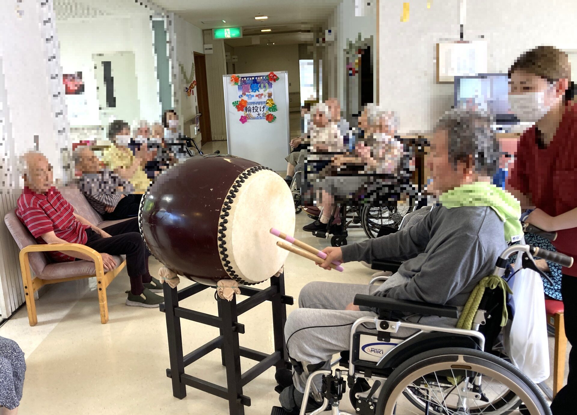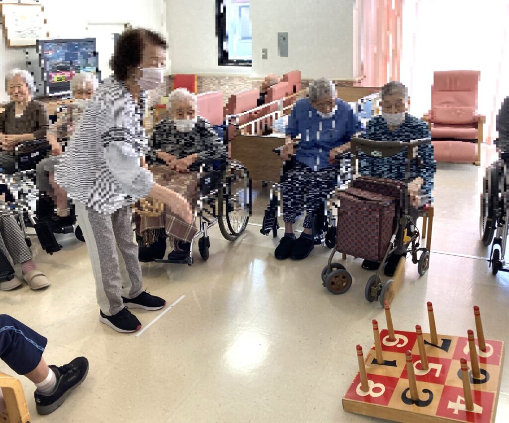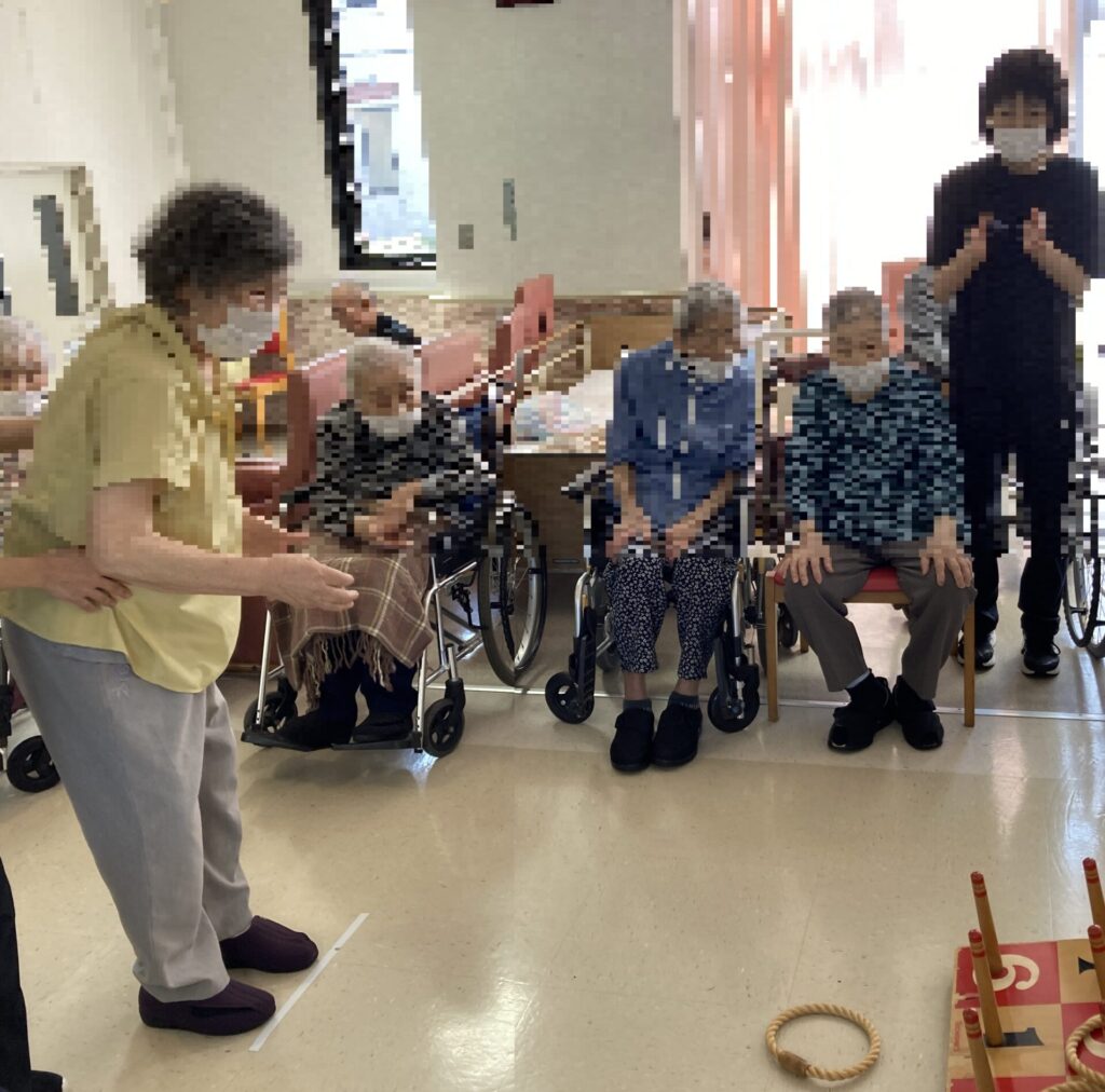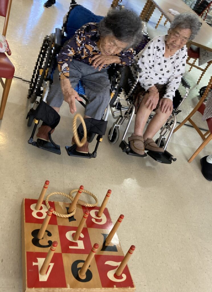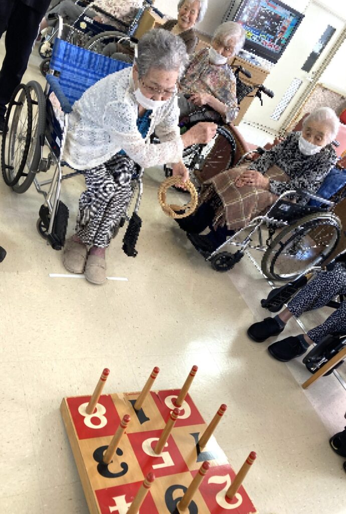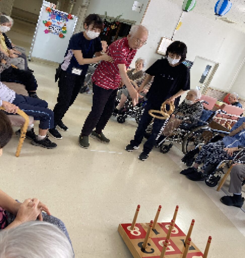 太鼓を叩いて盛り上がった後は、輪投げ大会!