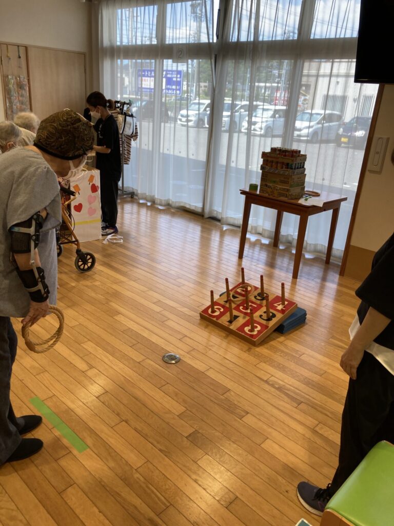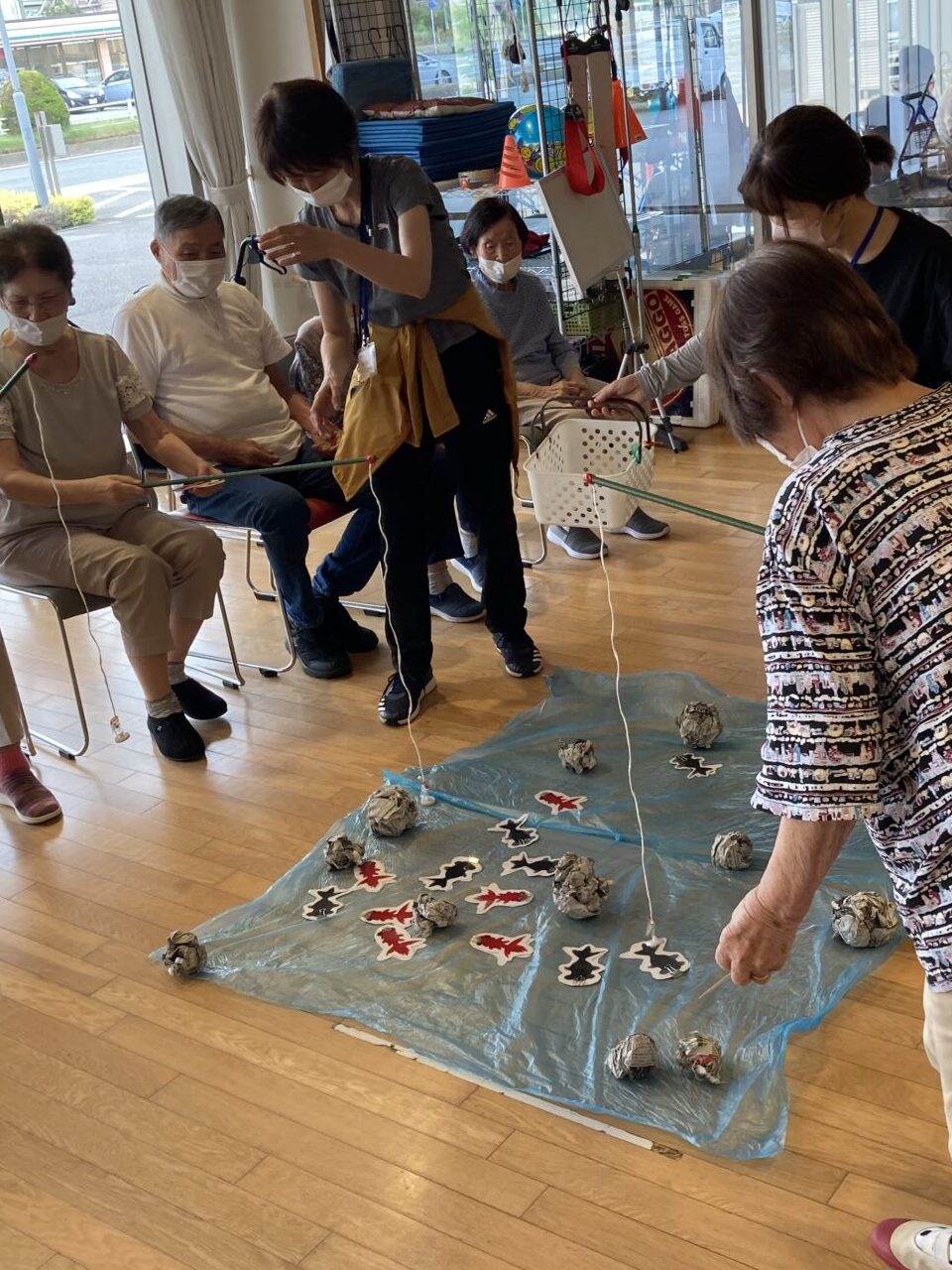 お祭りらしいお昼ご飯を食べた後は、輪投げや千本引き、魚釣りといったゲームをしたり、みんなで炭坑節を踊ったり・・・