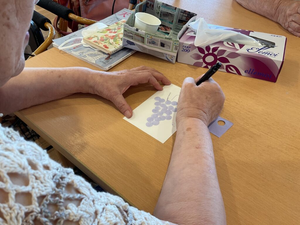 秋の絵葉書を作りました🍇 投稿日 2025年9月8日 著者 通所介護事業所 ハートヒルかわげR23 カテゴリー スタッフブログ ハートヒルかわげR23です😄だんだんと朝晩が涼しくなってきましたね!そんな秋を感じる今日この頃…当施設では秋の絵葉書を作りました🥰スタンプをポンポンと叩いてブドウを描いてもらいました🍇初めての作業に「難しいわ・・・」「どうやるの?」と戸惑いを見せる方も。ですが、皆さんすぐに要領をつかみ夢中で作業をされていました!さすが、人生の先輩方👵この機会にぜひ、懐かしい方や親しい方とお手紙を交わしてみてくださいね😊 ハートヒルかわげR23