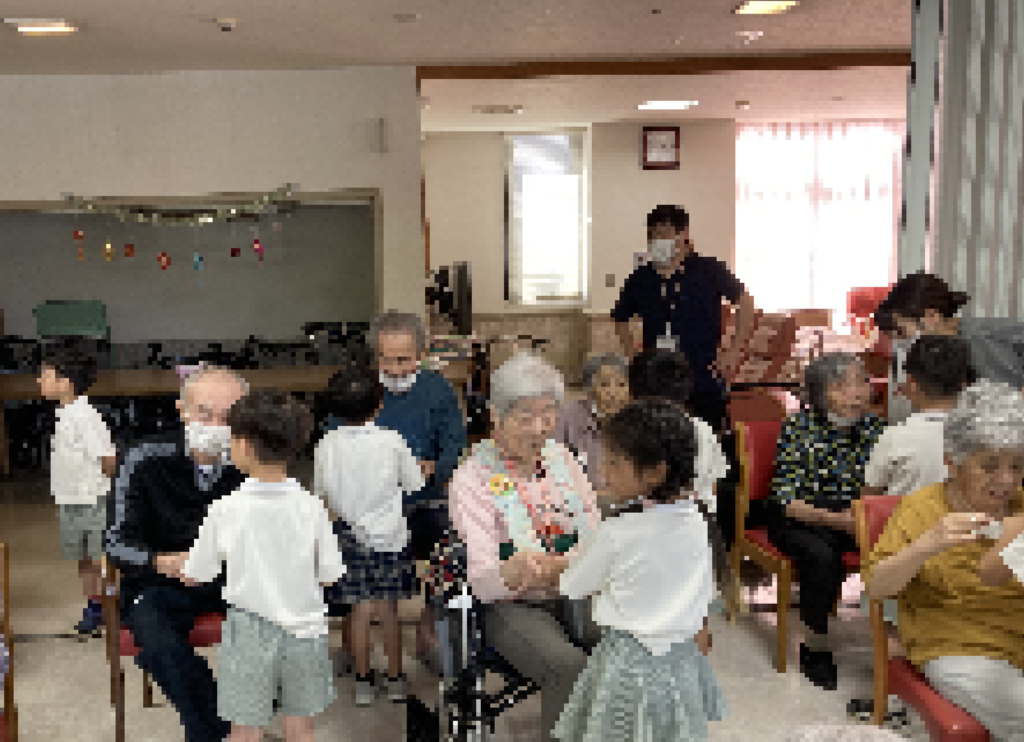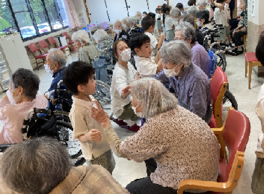 入所者様からは「かわいいわぁ」「元気でええわ」といった声が聞かれ、目を細めて喜ばれていました。中には、お孫さんやひ孫さんを思い出されたのか涙する方