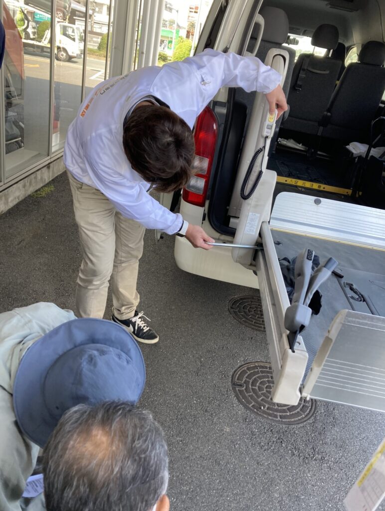リフトやステップなどの不具合が発生した際の緊急回避方法について、講師の方が実演を交えながら丁寧に説明してくださいました。