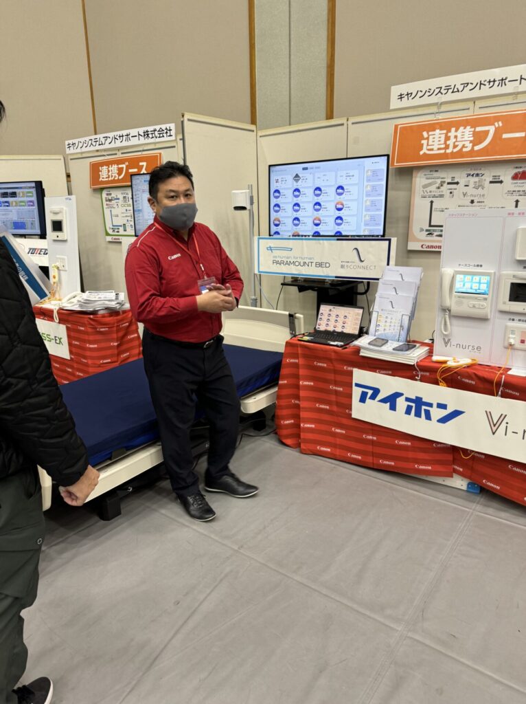 介護施設で行われる介護記録・ケア記録・利用者情報管理などをデジタル化・統合化するICTソリューションも紹介されていました。これにより、記録作業の効率化、情報共有の迅速化、業務負担の軽減、安全管理の強化といった取り組みをワンストップで支援してくれるサービスとなっています