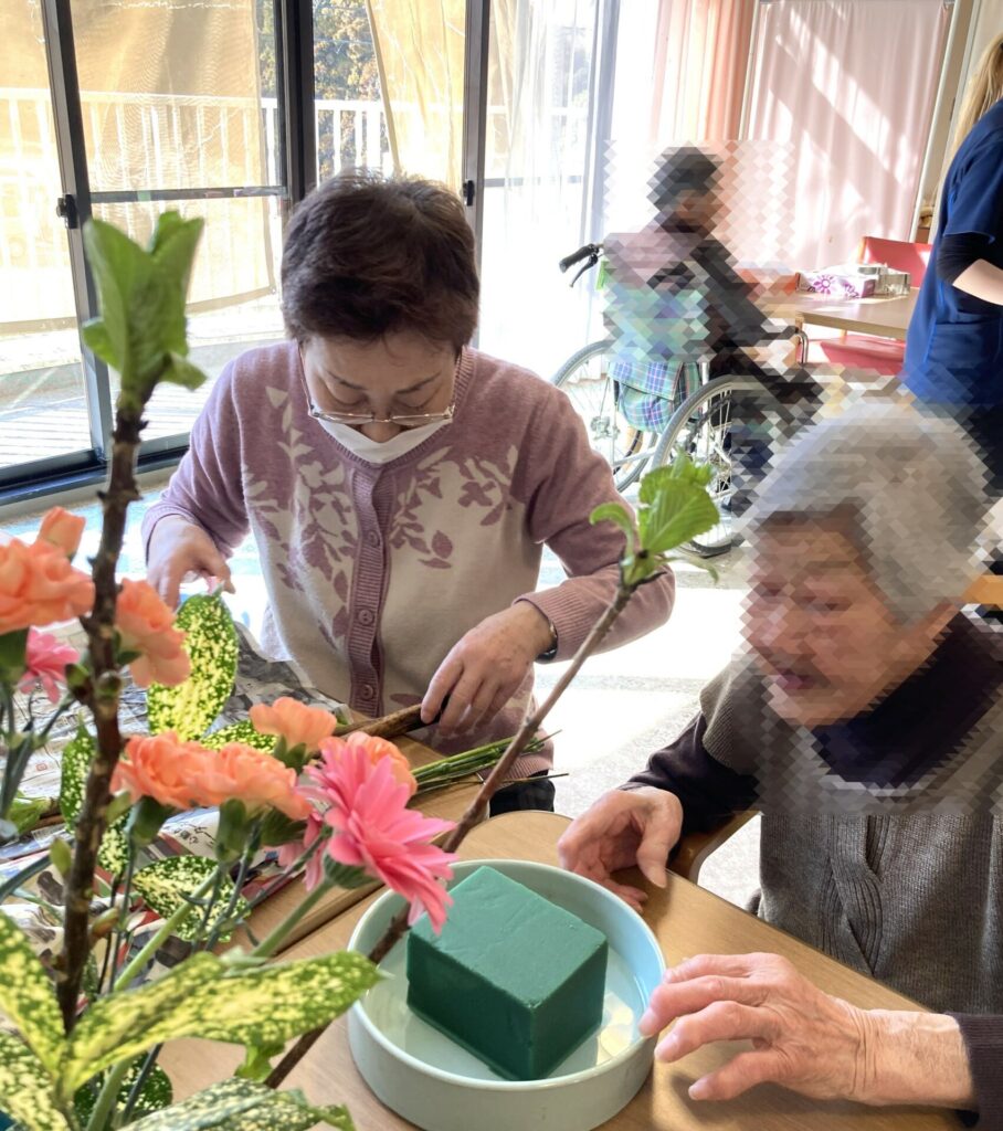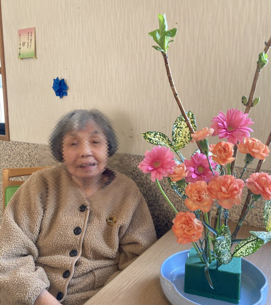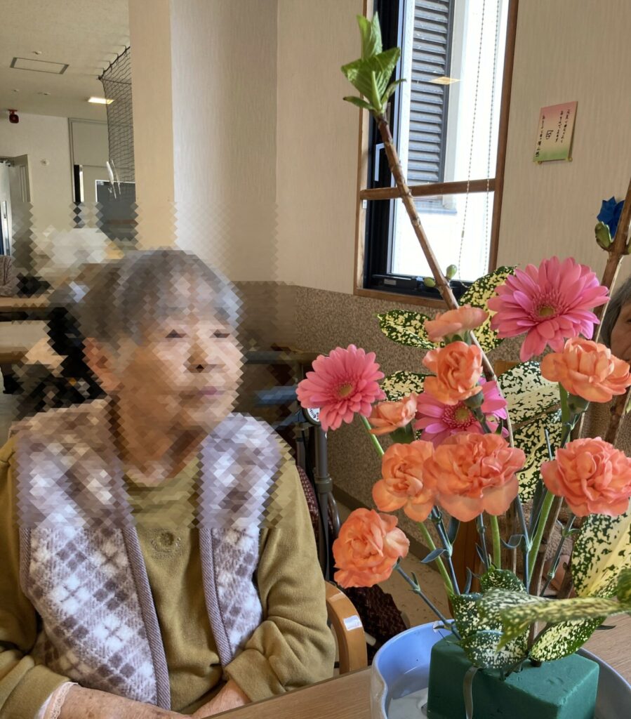 では、今月もお花と入所者の皆さんとの素敵な写真をご覧ください💕
