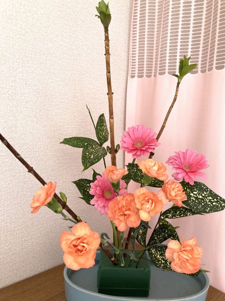 芽出しアジサイ、ガーベラ、スプレーカーネーション、ゴッドセフィアナです!