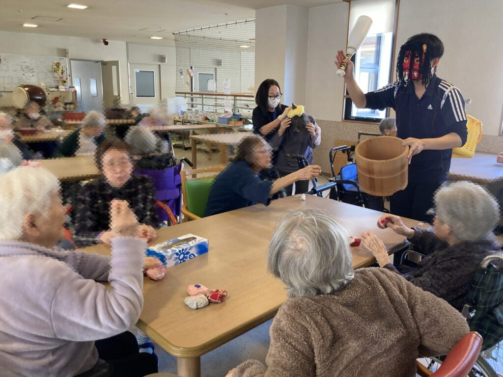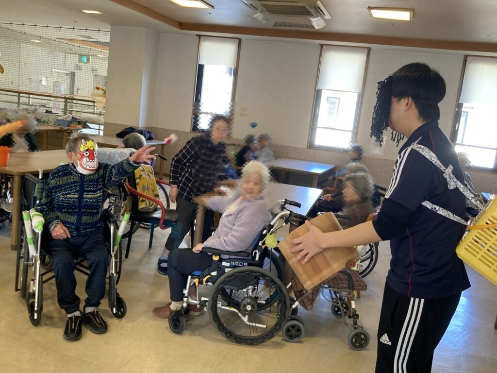 今回は2階特養での豆まきの様子をご覧ください!!