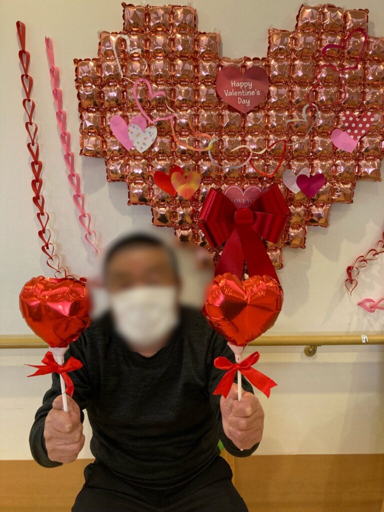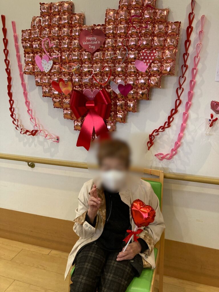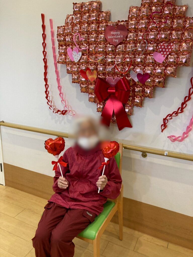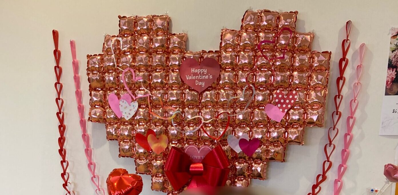 職員さんが飾り付けしてくださったハート💖の模型と一緒に