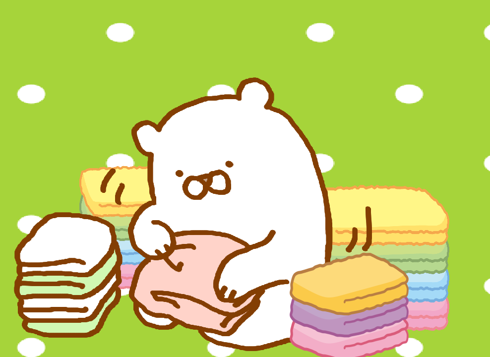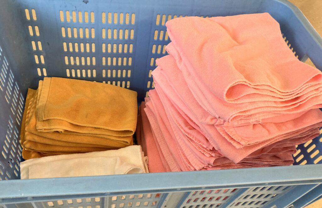 わいわいとおしゃべりしているうちに、たくさんのタオルがきれいに整いました。