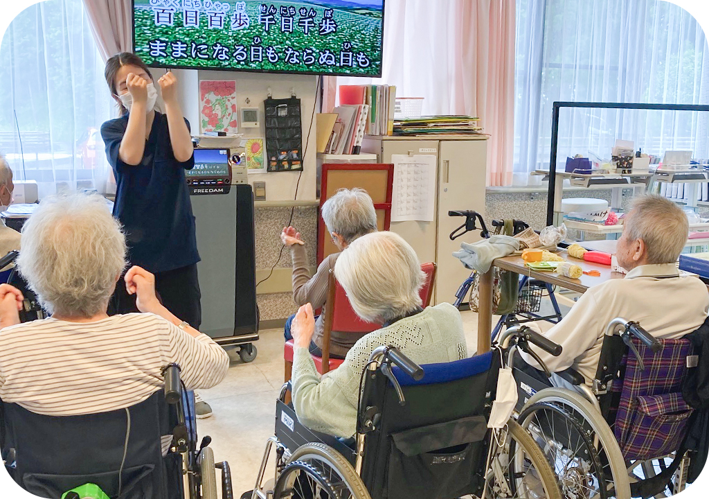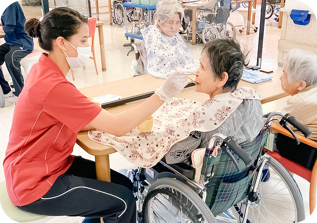 施設では、食事や入浴などの日常生活上の支援や、生活機能向上のための機能訓練や口腔機能向上サービスなどを日帰りで提供します。